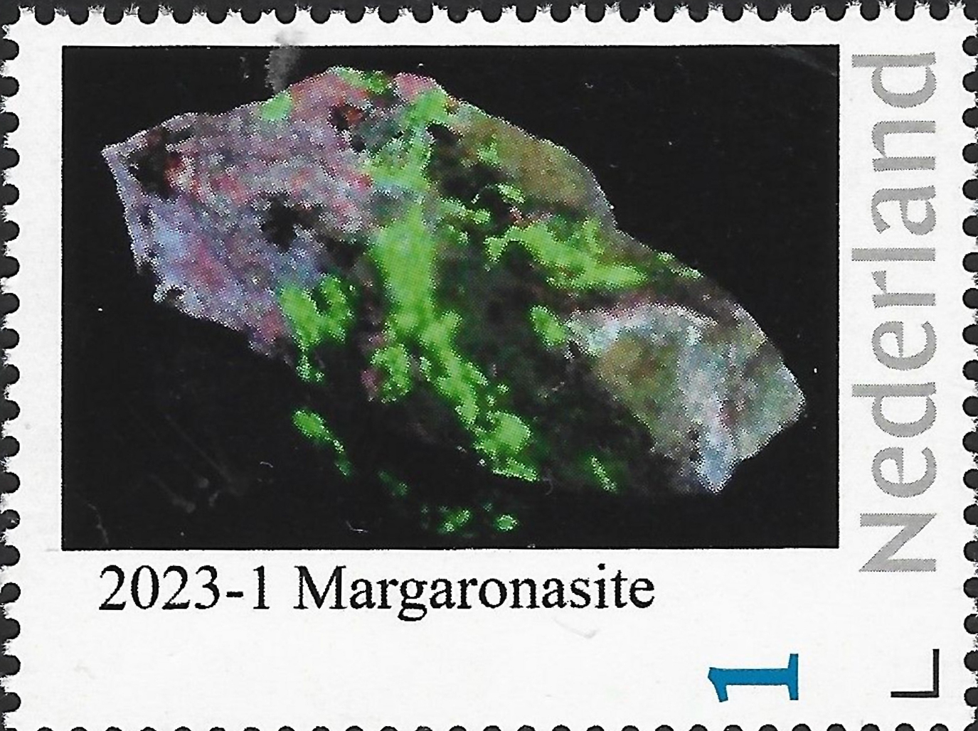Margarosanite Pb(Ca,Mn2+)2(Si3O9) Mistake on stamp |