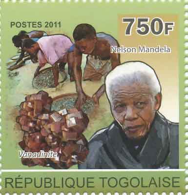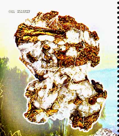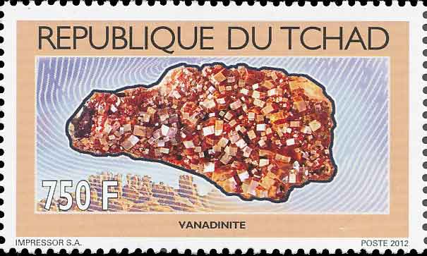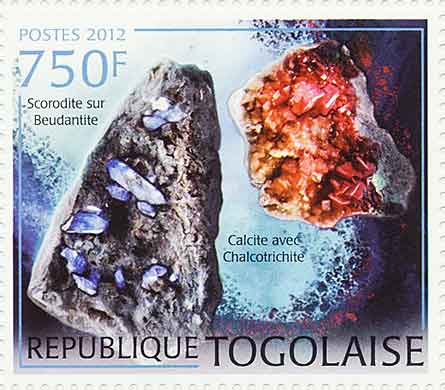Rock bauxite + Vanadinite, Calcite, Chrysocolla |