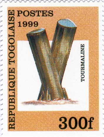 Tourmaline (Ca,K,Na,[]) (Al,Fe,Li,Mg,Mn)3 (Al,Cr, Fe,V)6(BO3)3 (Si,Al,B)6O18 (OH,F)4 |